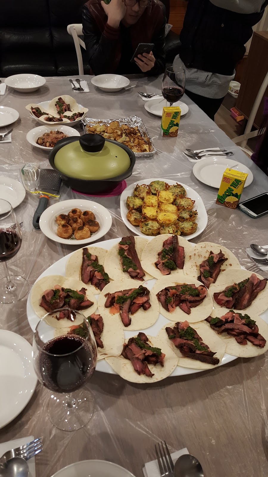 My friend decided to make ribs and takoyaki (a weird combination I know, but it worked). The ribs were very tender and flavoursome which really reflected the amount of effort he put in to make the ribs. It would have been even better if it was warm enough to have a backyard barbeque where he could have put some smoke and charcoal on it. My friend also took the opportunity to try out various ideas for takoyaki flavours. My two favorites of the night were the XO takoyaki and the truffle aioli takoyaki. Being that the takoyaki was already very creamy inside, the addition of the tobiko and aioli really pushed it to a new level of decadence....a must try for any truffle fan. The XO was also really nice as the chilli oil from the XO sauce melded with the batter to create a ball of spicy goodness.